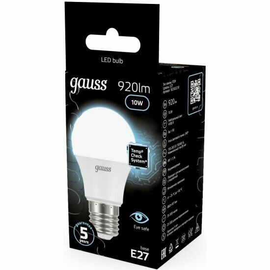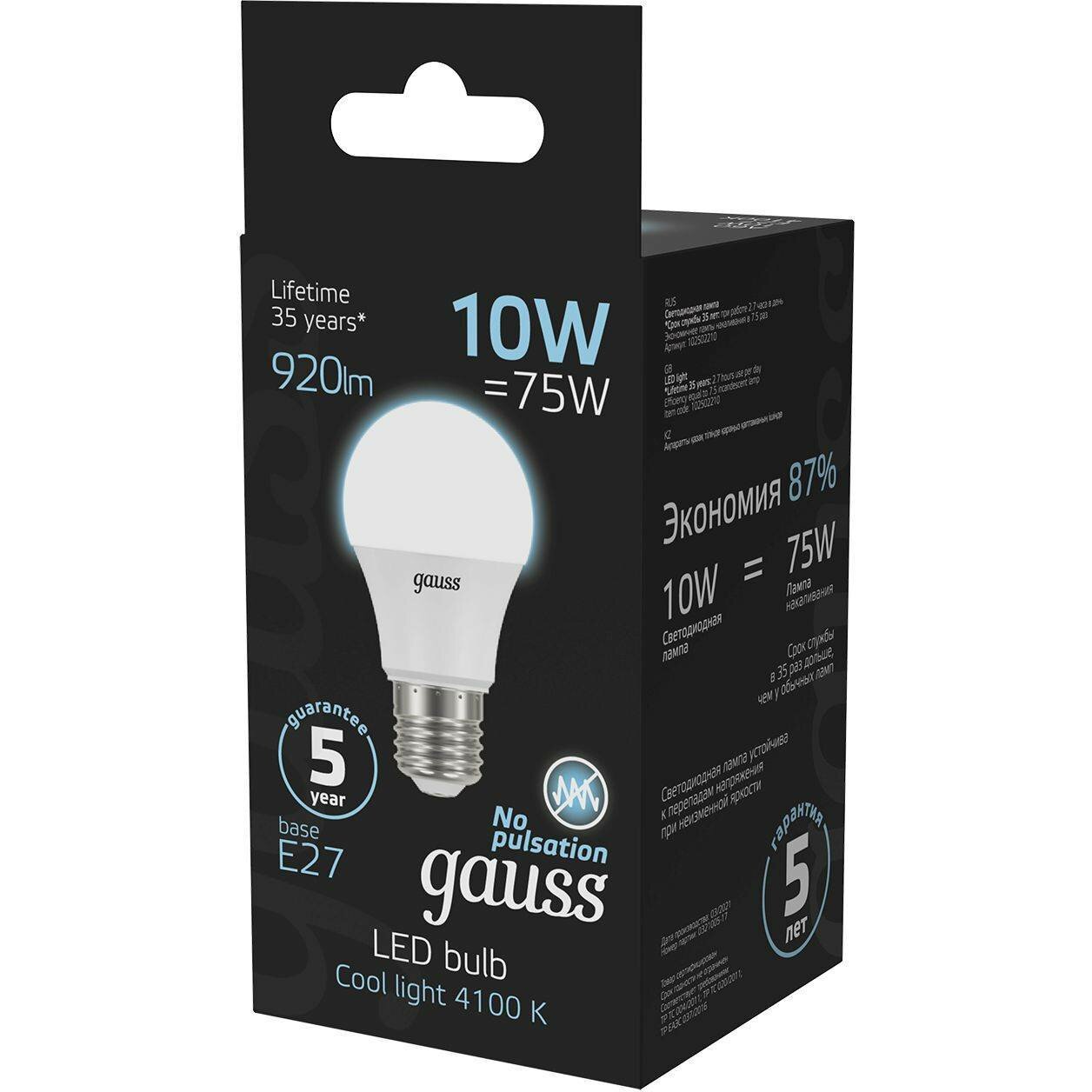 Светодиодная лампа Gauss LED A60 10W E27 920lm 4100K (упаковка 10шт) интересное: