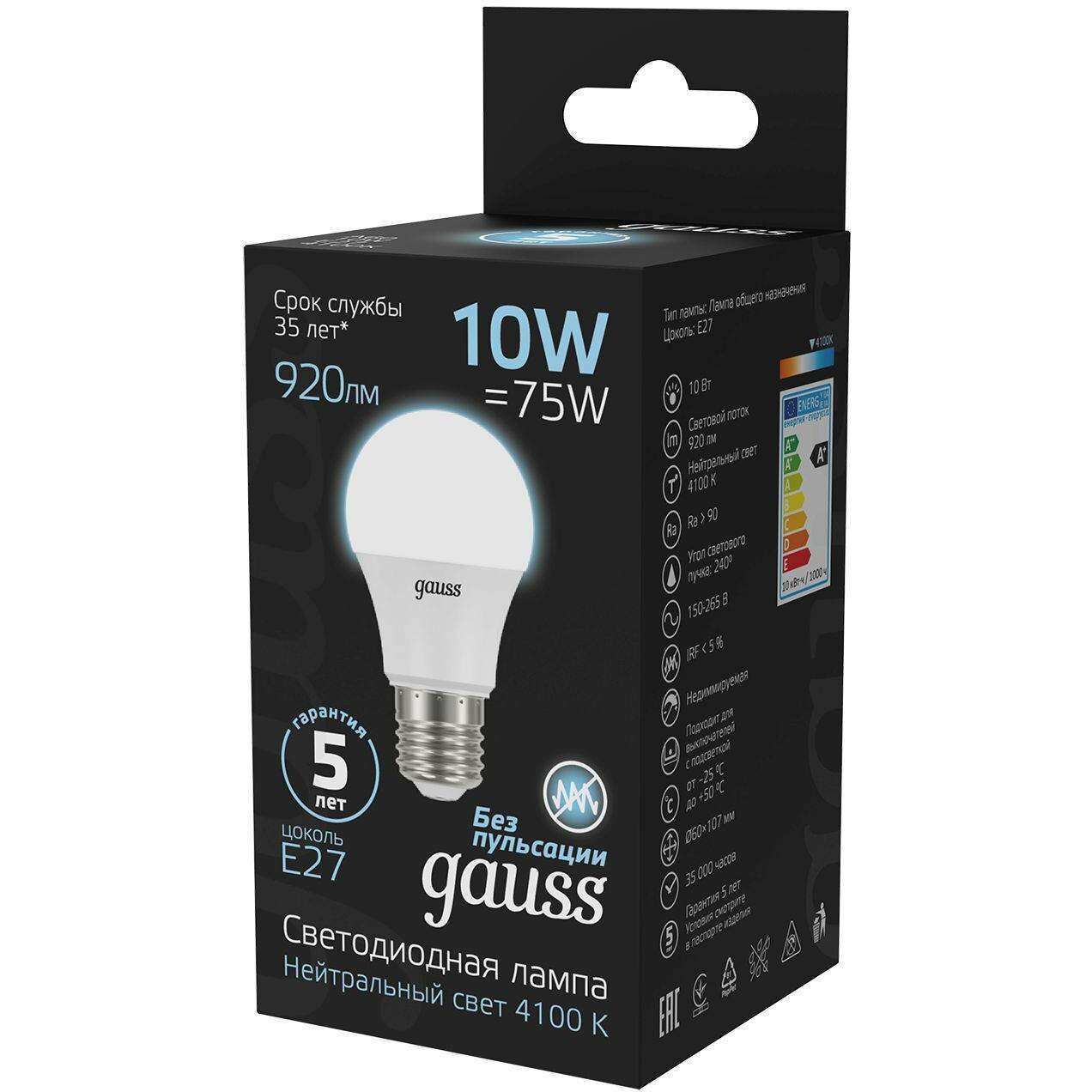 Набор из 10 штук Лампа Gauss A60 10W 920lm 4100K E27 LED 1/10/50
