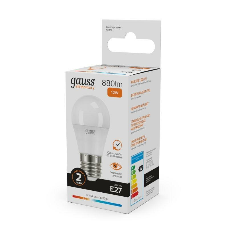 Лампа Gauss LED Elementary Шар 12W 880lm E27 3000K 53212