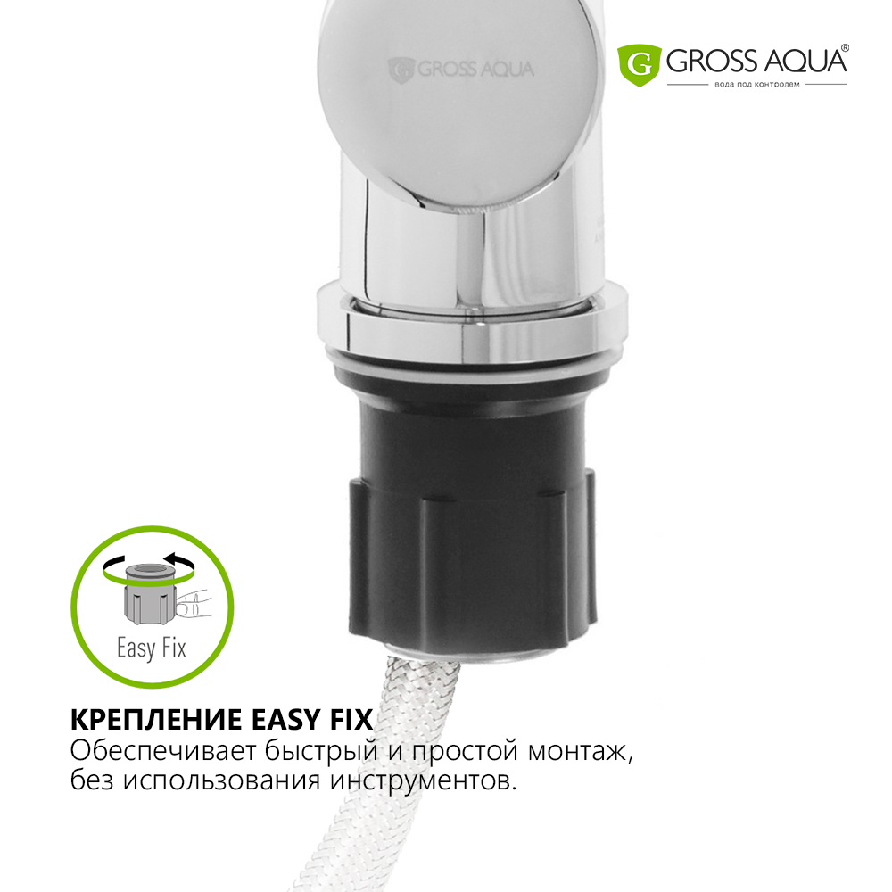 Смеситель для кухни с гибким силиконовым изливом GROSS AQUA ColorFlex, латунь, хром, серый, 3241508G.