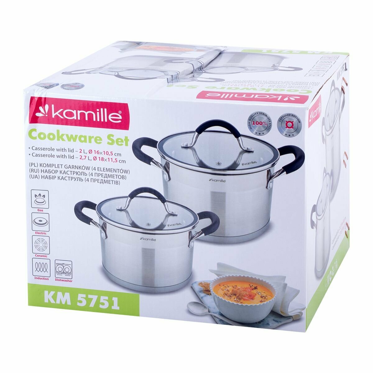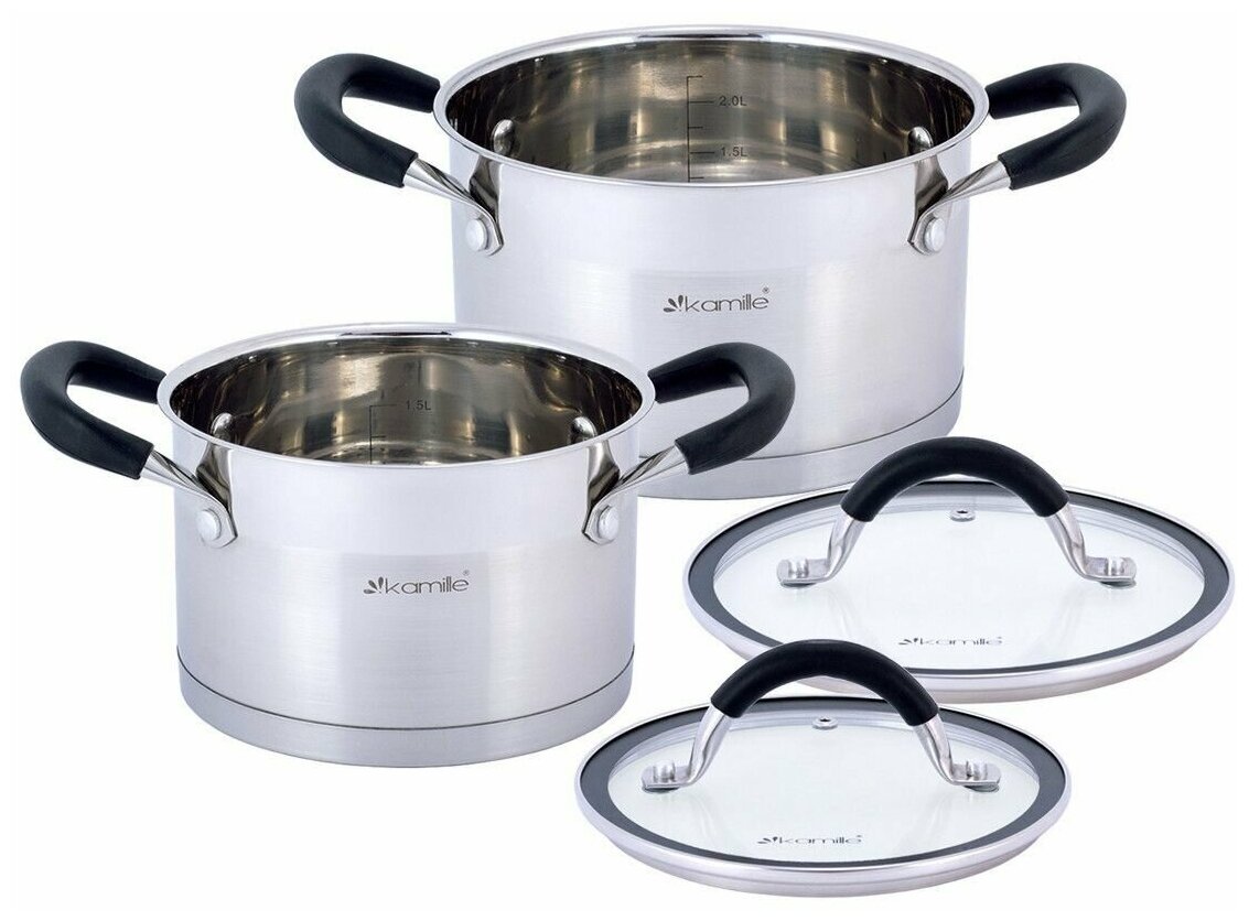 Набор кастрюль из нержавеющей стали Kamille с силиконовыми вставками на ручках
