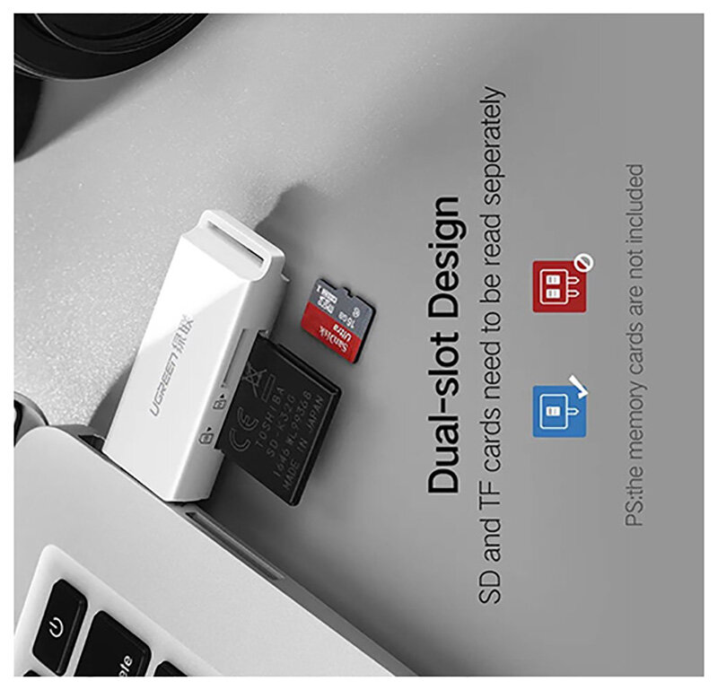 СохранитьКардридер UGREEN CM104 (40753) USB 3.0 to TF + SD Dual Card Reader. Цвет: белый интересное: