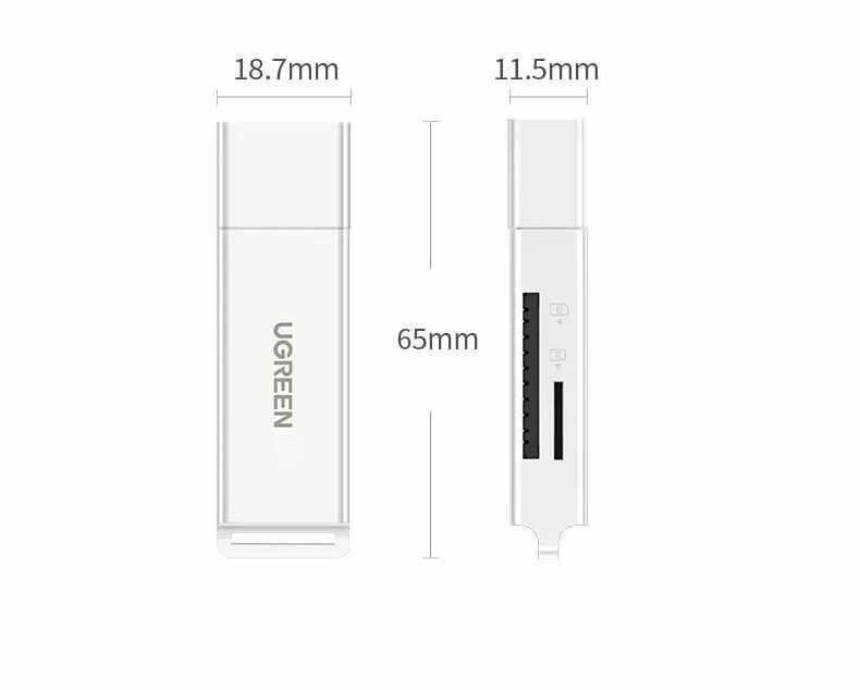 Купить Кардридер UGREEN CM104 (40753) USB 3.0 to TF + SD Dual Card Reader. Цвет: белый