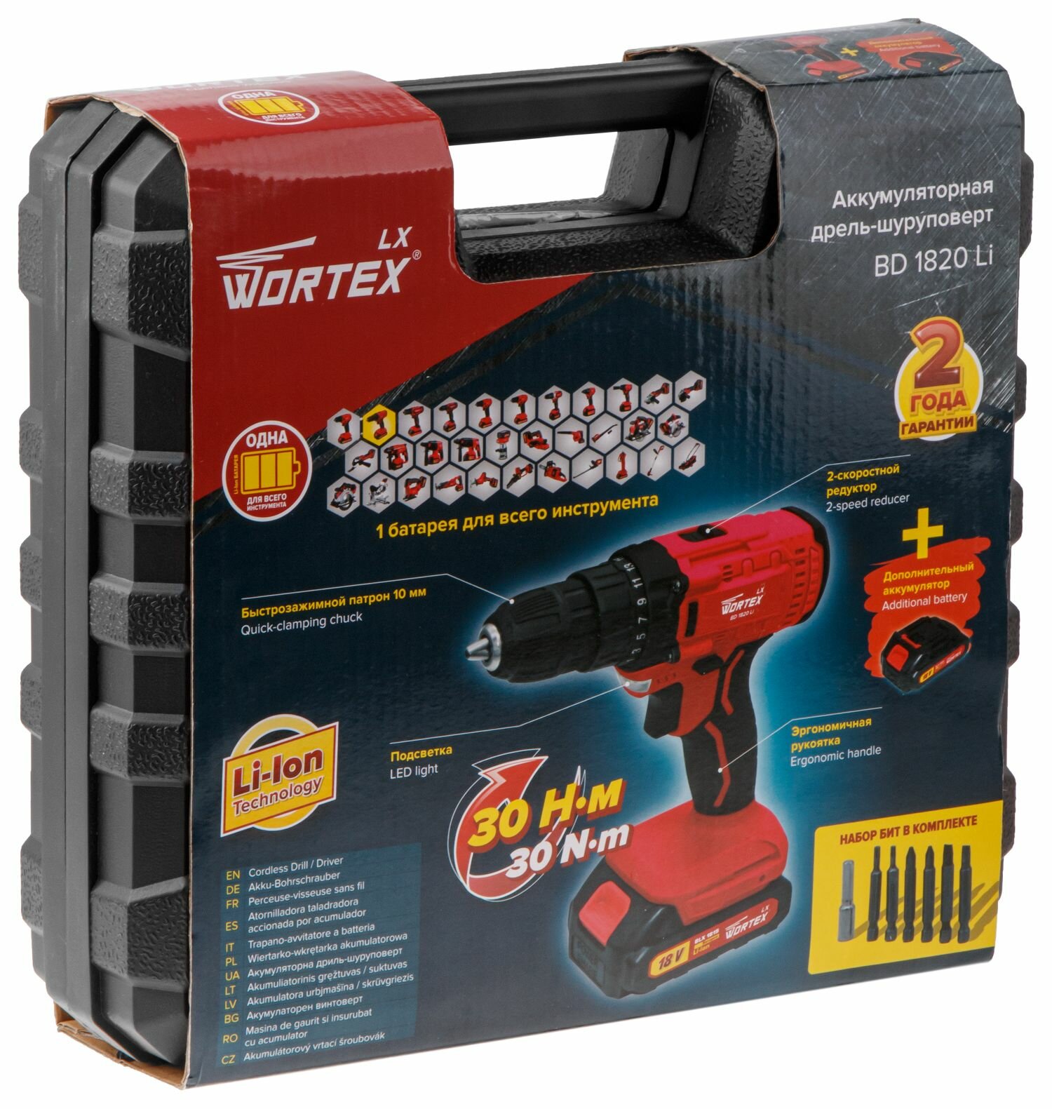 Дрель-шуруповерт Wortex LX BD 1820 Li 0329076 (с 2-мя АКБ, кейс)