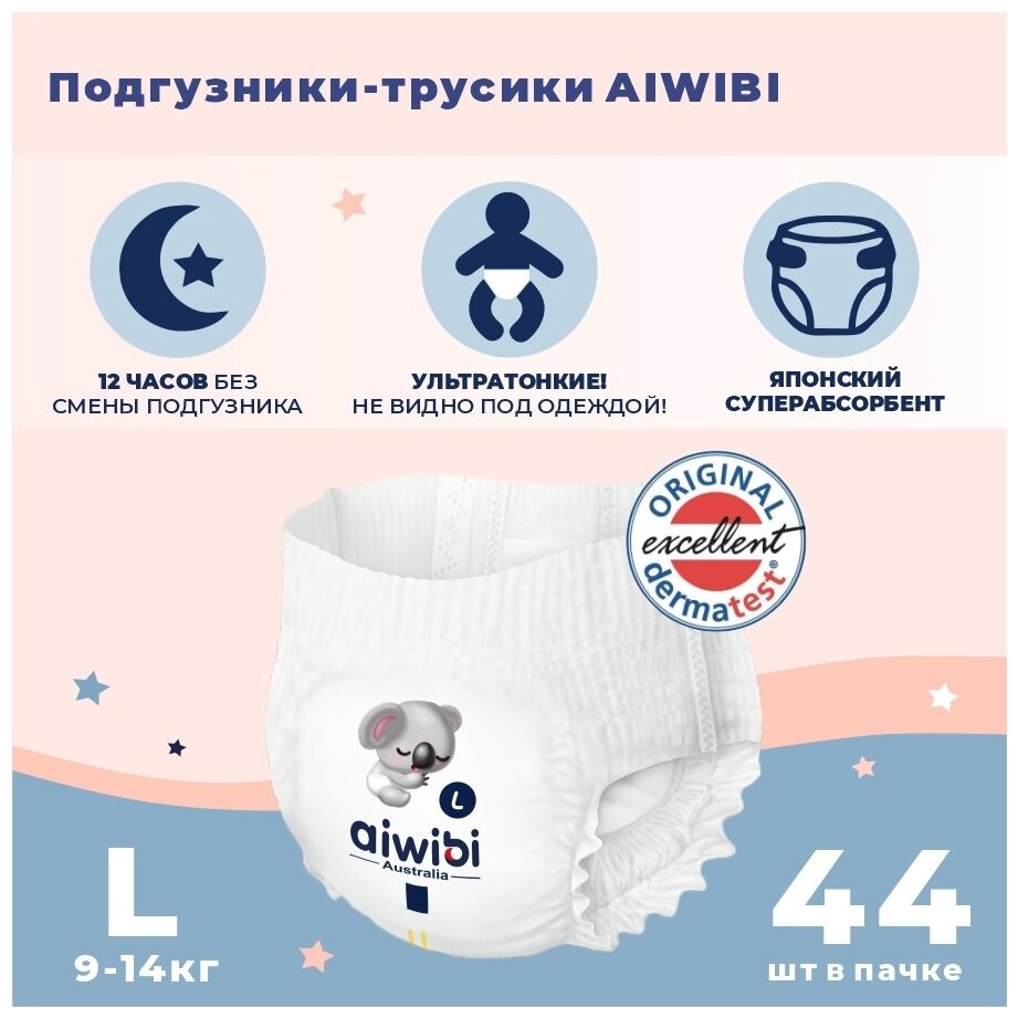 Трусики-подгузники детские AIWIBI Premium L (9-14кг) 44 шт айвиби, памперсы