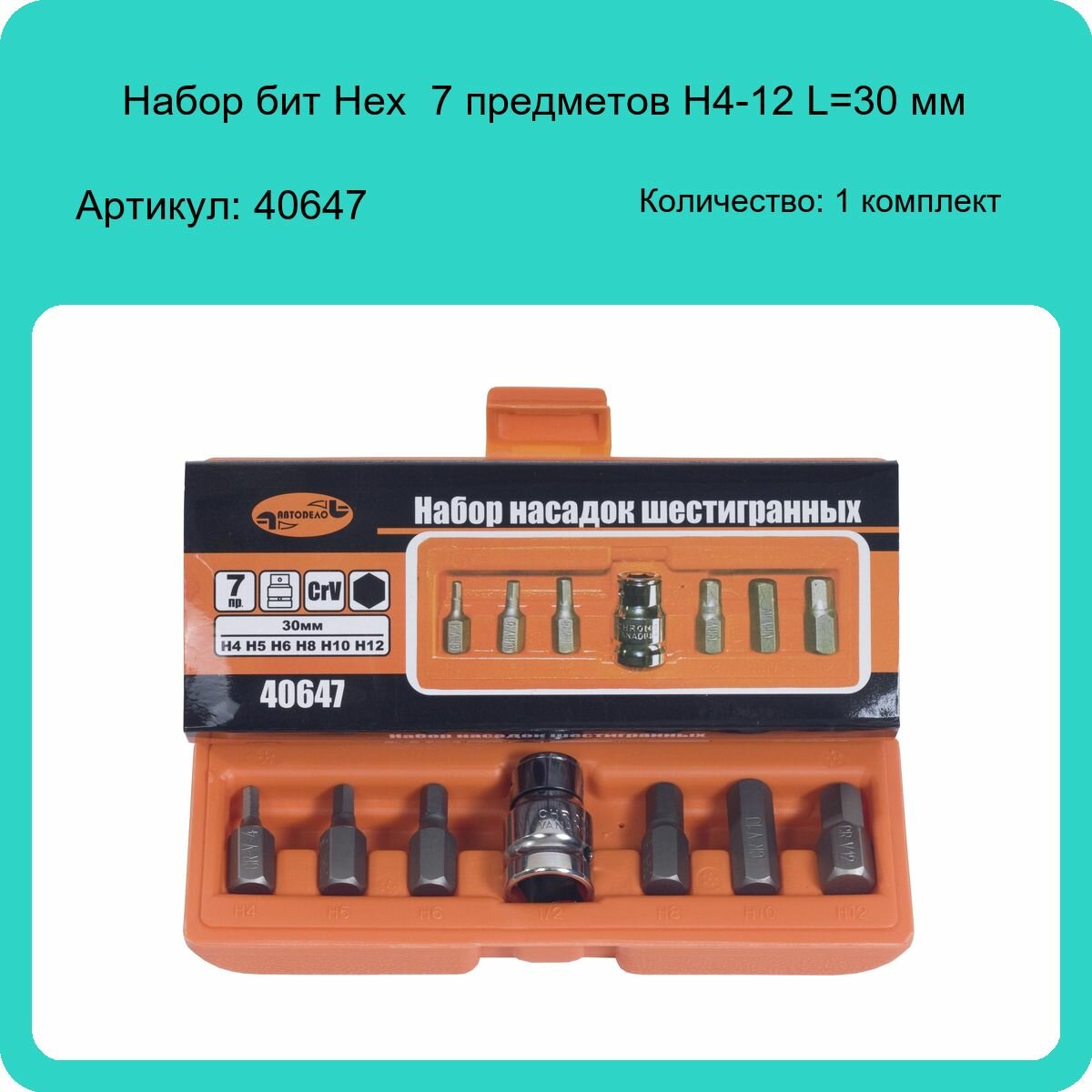 Набор бит Hex 7 пр. H4-12 L=30 мм АвтоДело автодело 40647 | цена за 1 шт