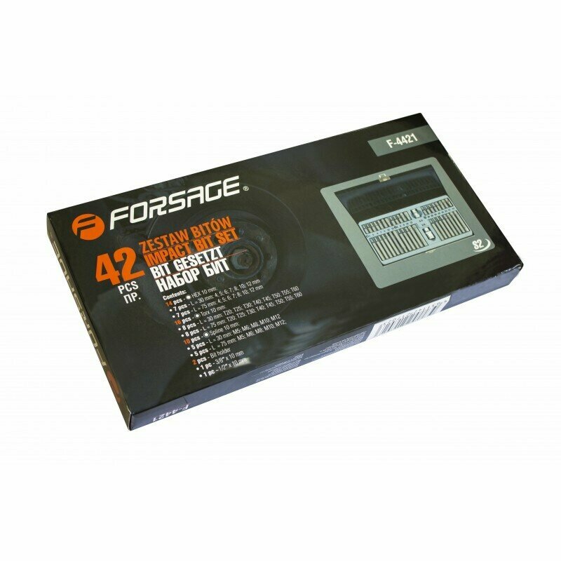 FORSAGE F4421 F-4421_набор бит с битодержателями! 42пр. (10мм)(75/30мм T20-T60, H4-H12, M5-M12), в метал. кейсе\ 1шт