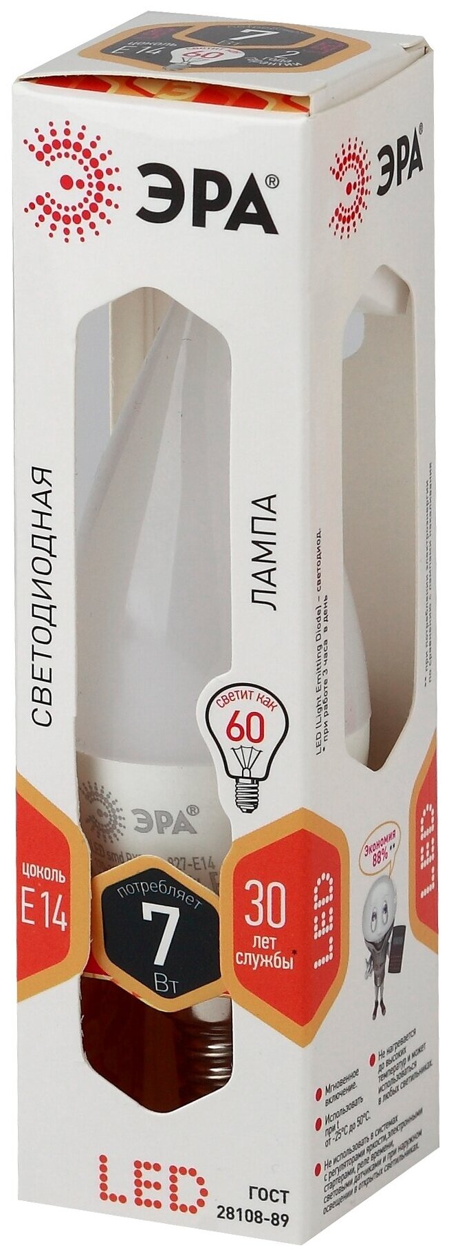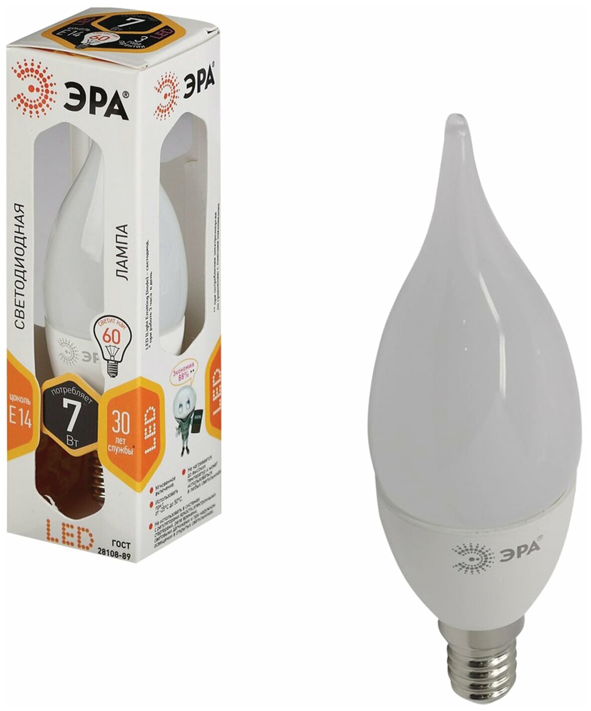 Лампа светодиодная Эра 7W E14 2700k свеча на ветру LED BXS-7W-827-E14 интересное:
