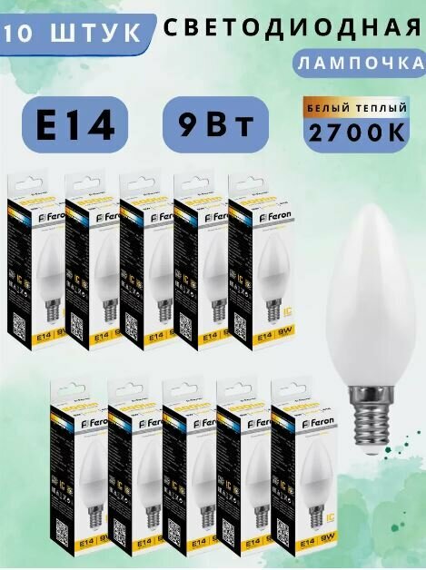 Упаковка светодиодных ламп 10 шт. Feron LB-570 25798, E14, C37, 9 Вт, 2700 К