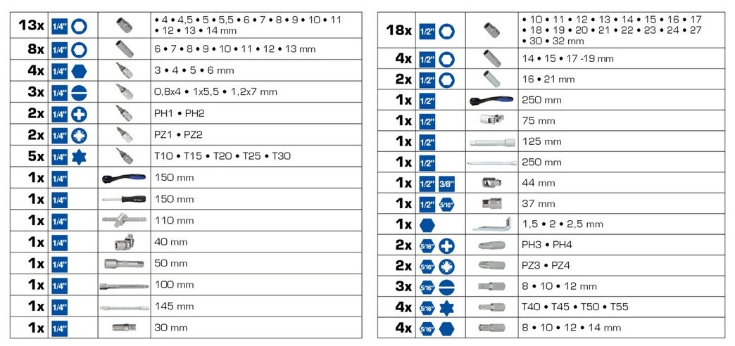 Набор торцевых ключей 1/4" 1/2" BT (Brilliant Tools) 94 предмета интересное: