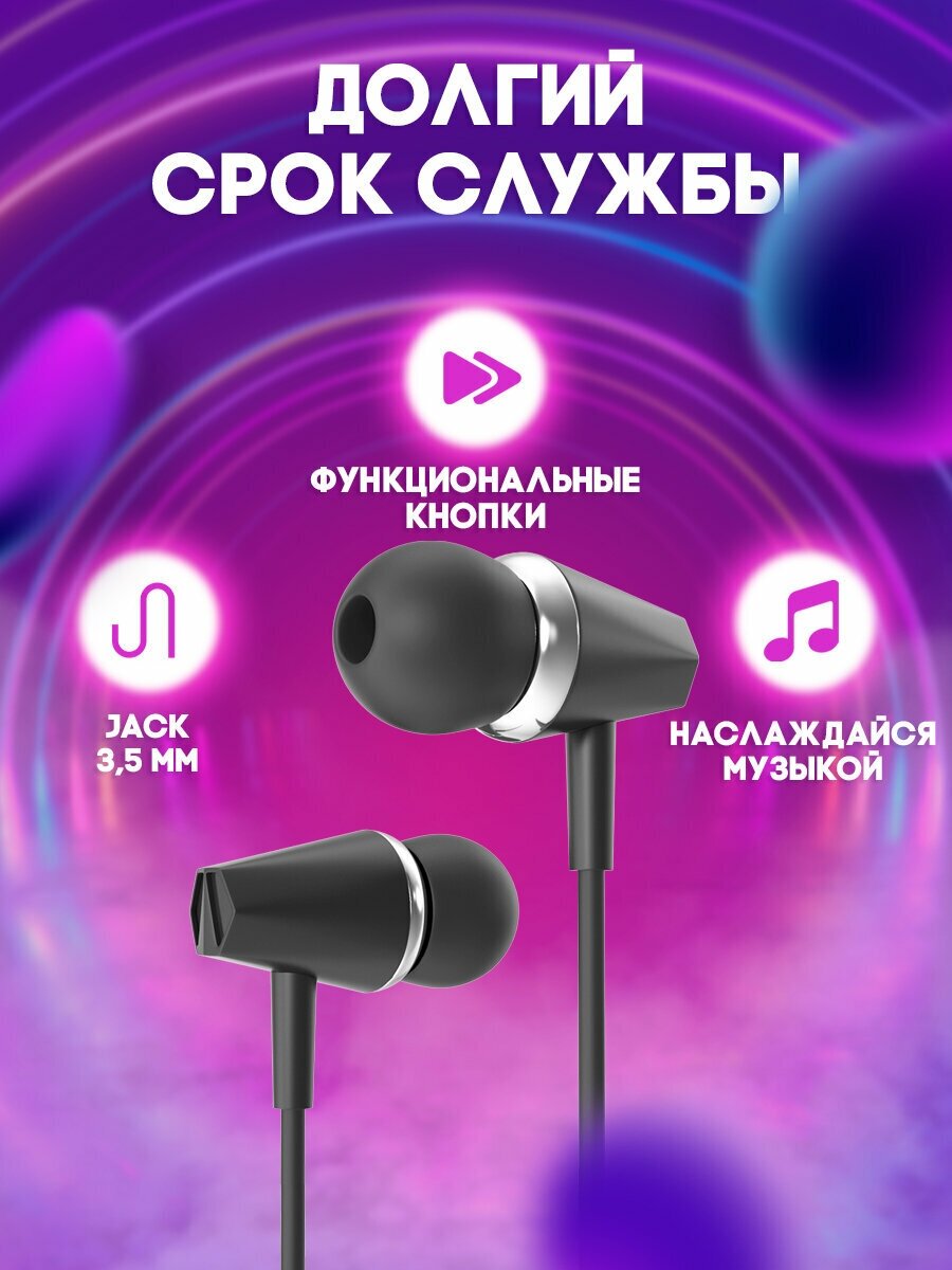 Купить Наушники проводные с микрофоном для телефона, Гарнитура для Айфон iPhone и Андроид, FINITY Pulse Music, микрофон, кнопка ответа, 1.2м, черный