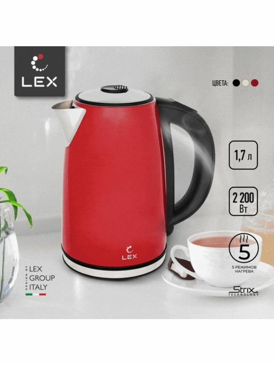 Чайник lex lx 30021-2 2200вт 1,7л металл эл.управление красный