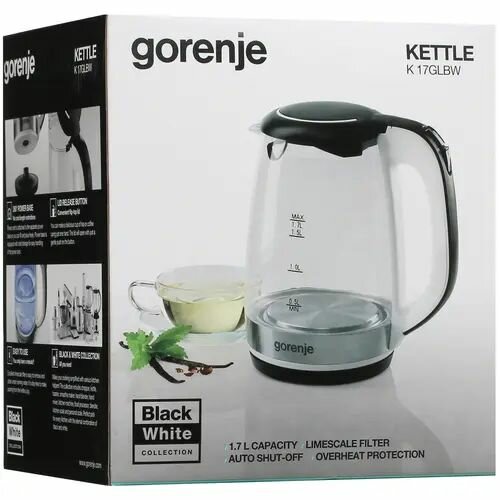 Чайник электрический Gorenje K17GLBWGOR черный (корпус: стекло)