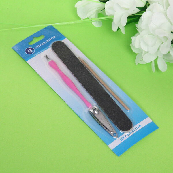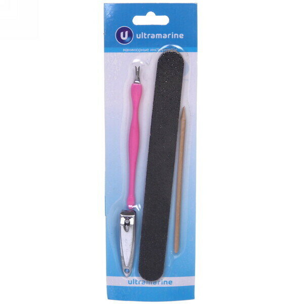 Купить Маникюрный набор на блистере, 4 предмета «Ultramarine» (пилка наждачная черная, кусачки, апельсиновая палочка и триммер)