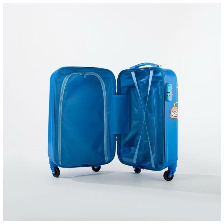 Чемодан детский 16", отдел на молнии, 2 колеса, цвет голубой