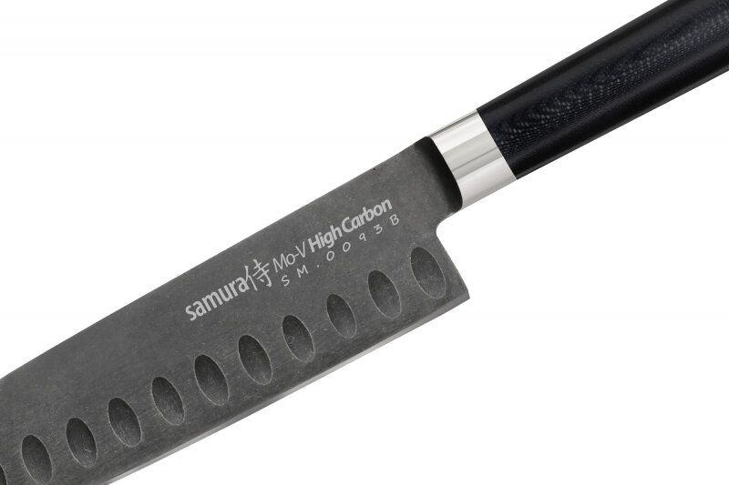 Нож кухонный Сантоку Samura Mo-V Stonewash 13,8 см интересное: