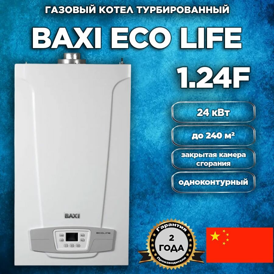 Конвекционный газовый котел BAXI ECO LIFE 1.24F, 24 кВт, одноконтурный