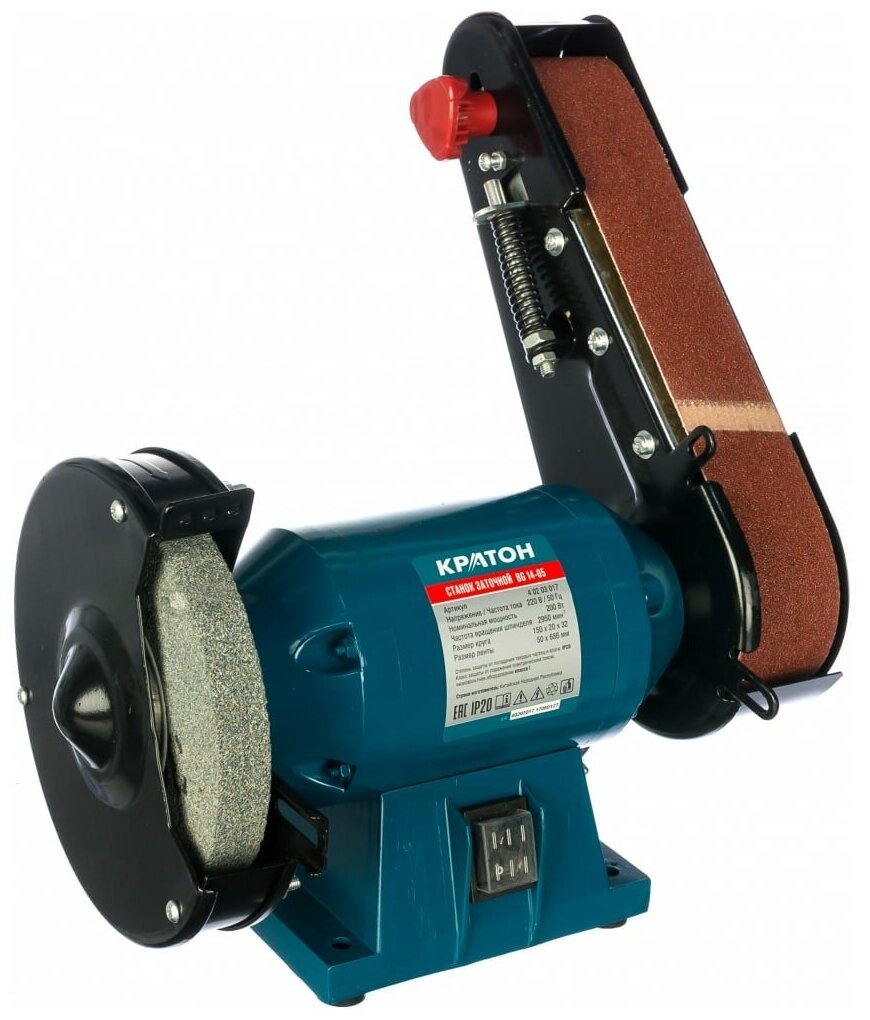 Станок заточной Кратон BG 14-05( оригинал) , электроточило (200 Вт, Размеры шлифовального круга 150х20х32 мм, Ленточно-шлифовальный узел)