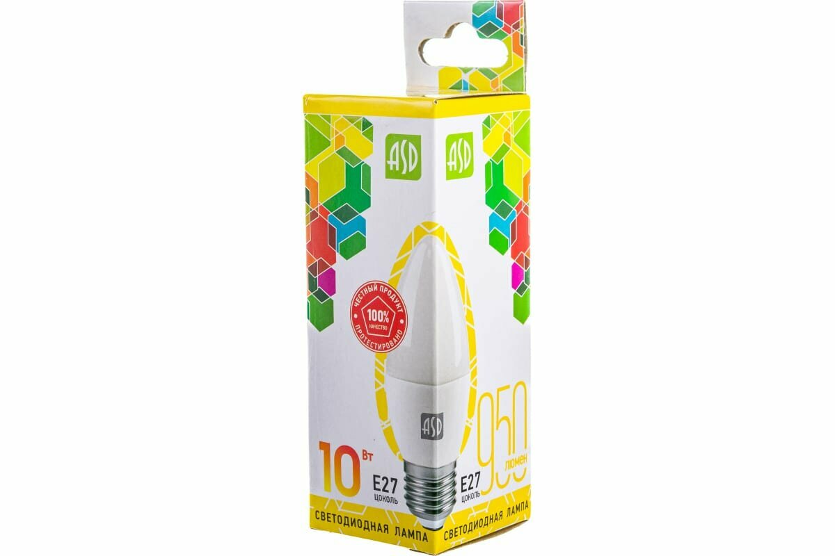 Лампа LED C 10Вт E27 220V 3000K 900Лм ASD 4690612015538