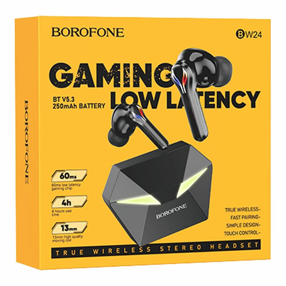 TWS гарнитура BOROFONE BW24 Magic BT 5.3, внутриканальная, LED, игровая (черный)