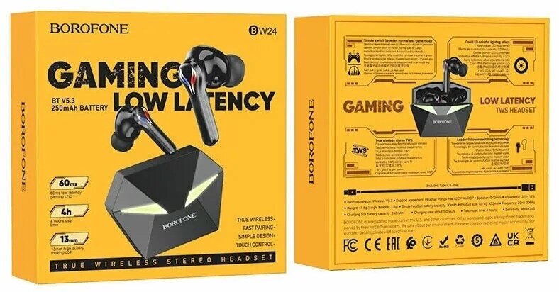 Беспроводные игровые наушники borofone BW24 Magic waves TWS интересное: