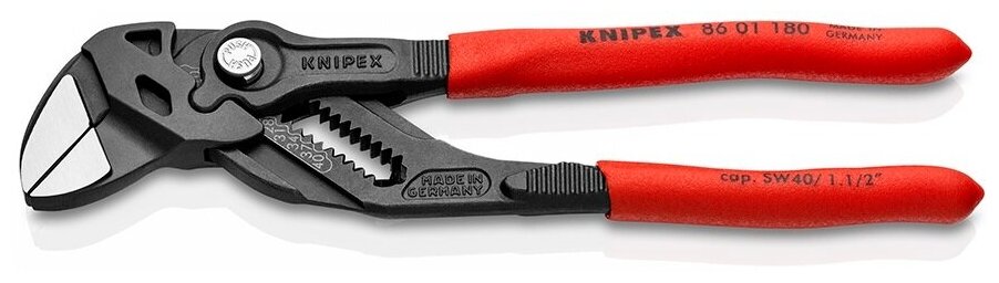 Клещи переставные - гаечный ключ Knipex KN-8601180SB, 40 мм (1 1/2"), 180 мм, пластиковые рукоятки