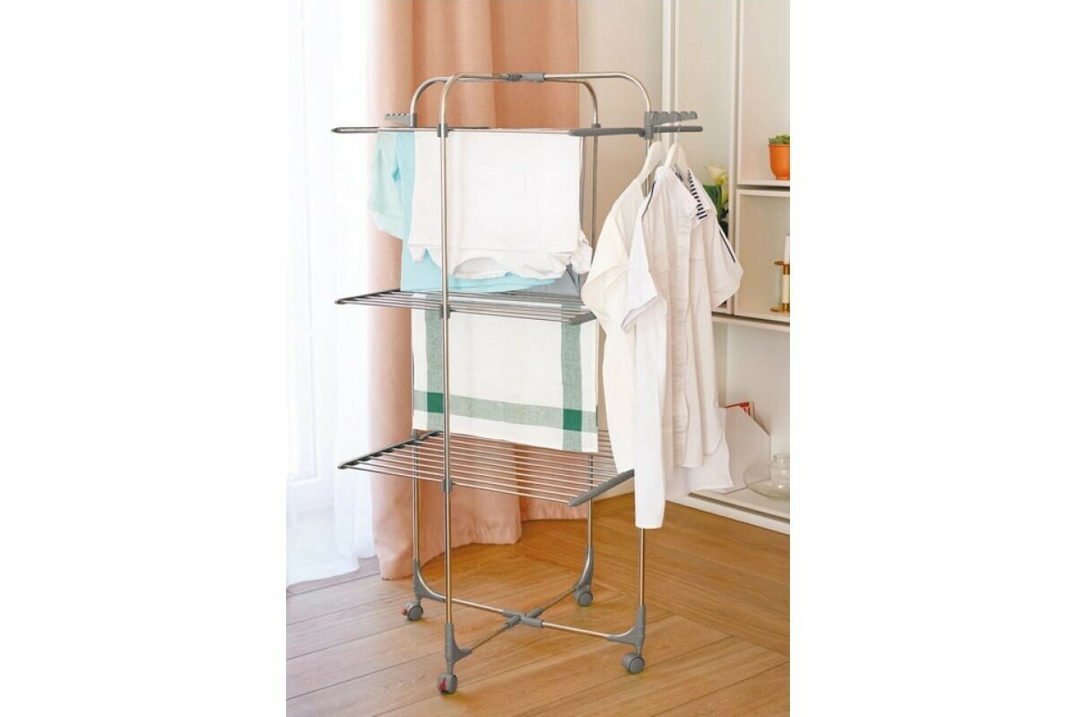 | Минусы: | Надо приноровиться, белье развешивается в зависимости от длины. Ощущение, что помещается меньше белья, чем на обычную сушилку. |
