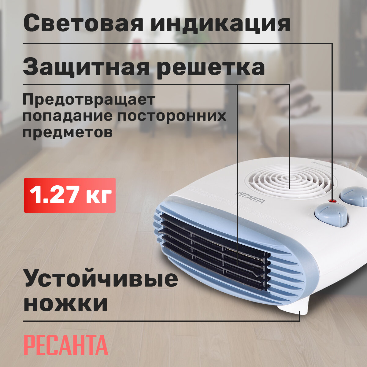 Тепловентилятор Ресанта ТВС-3, 2000Вт, с термостатом, 2 режима, белый [67/2/12]