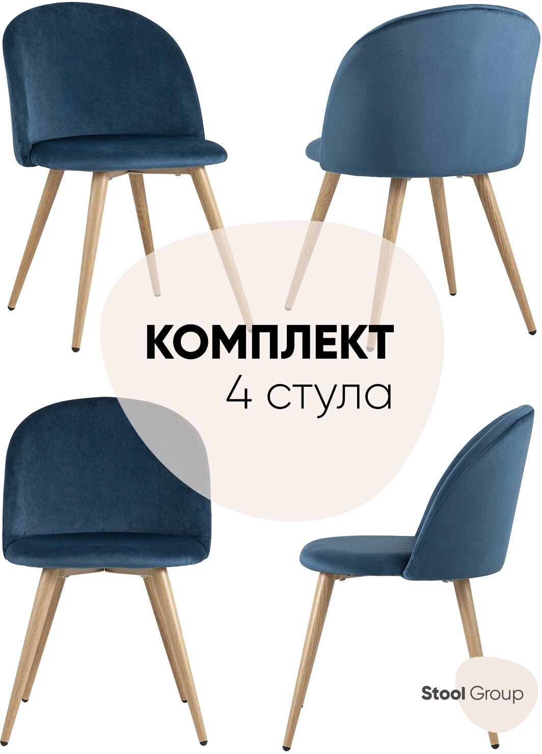 Купить Комплект стульев для кухни 4 шт Лион NEW велюр, голубой