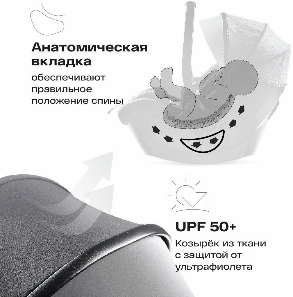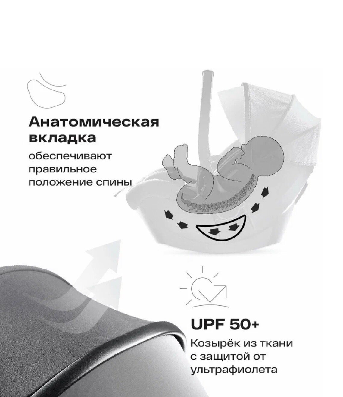 анатомическая подушка, капюшон / тент от солнца, мягкие накладки на внутренние ремни, ручка для переноски