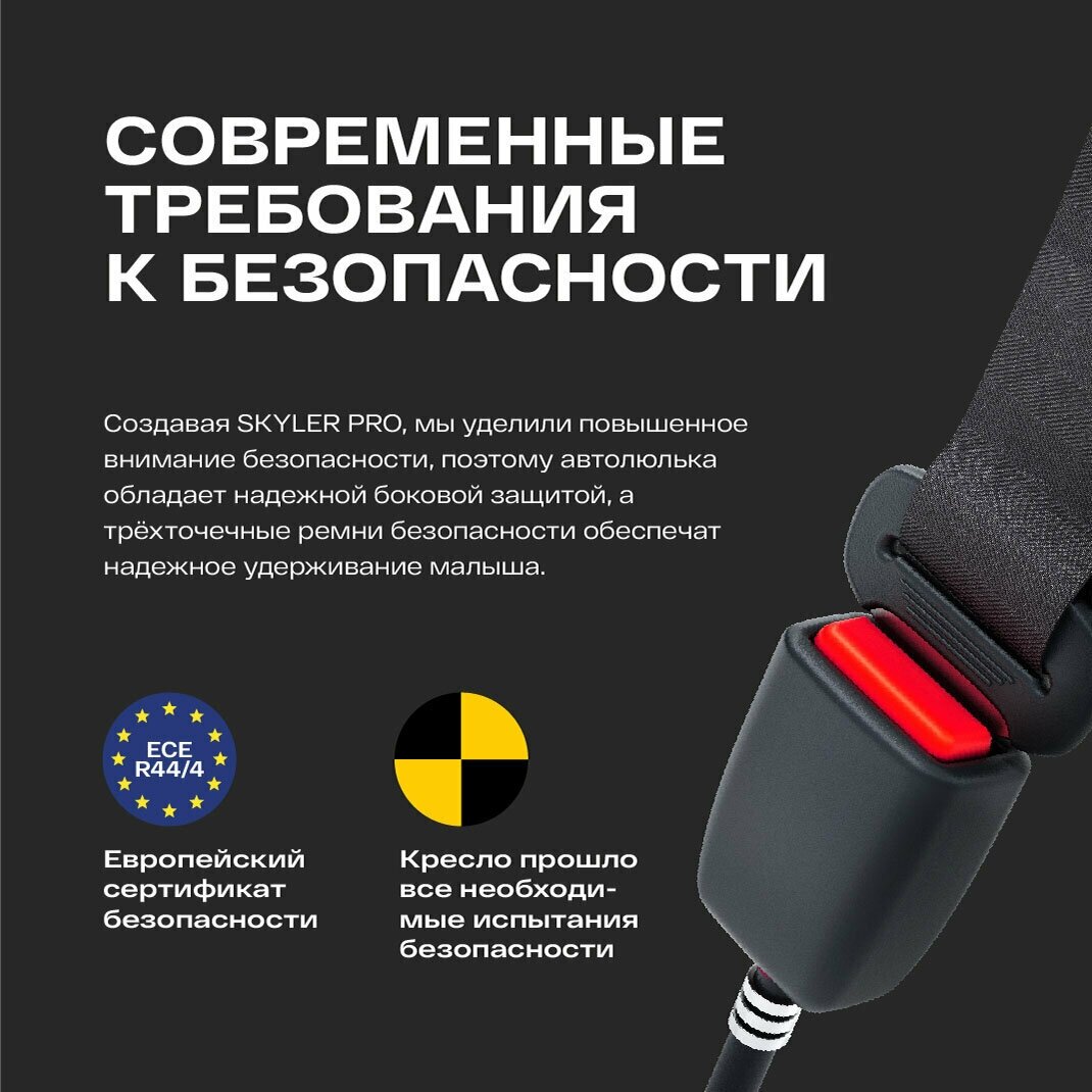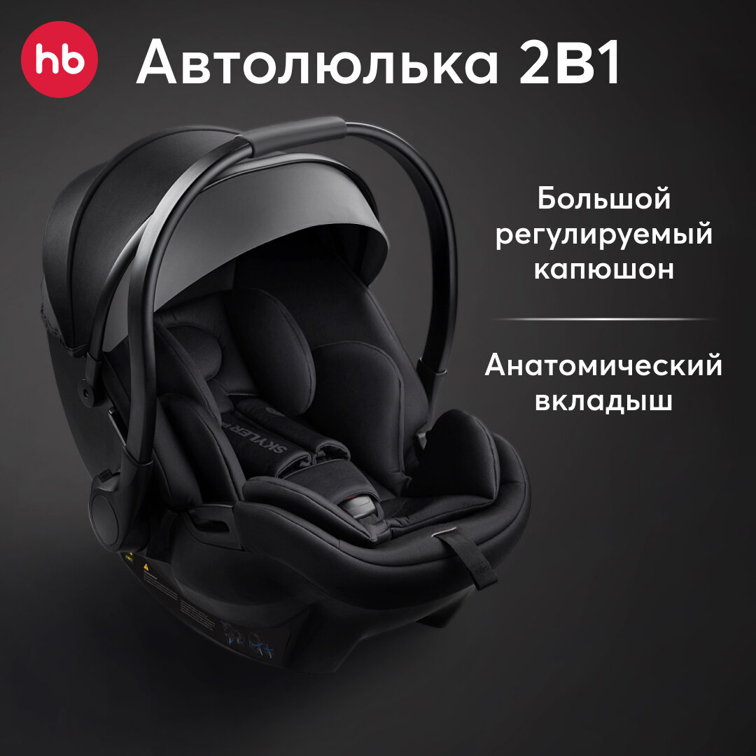Автокресло детское от 0, Skyler Pro Happy Baby, группа 0+, автокресло-переноска 0-12 мес (0-13 кг), темно-серое интересное: