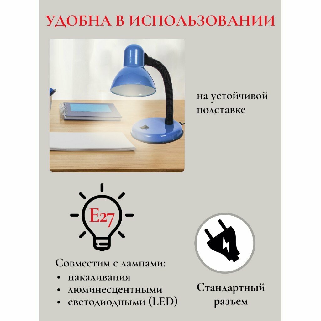 Светильник настольный на подставке, E27, 60 Вт, синий, Lofter, 203В-blu/270790 интересное: