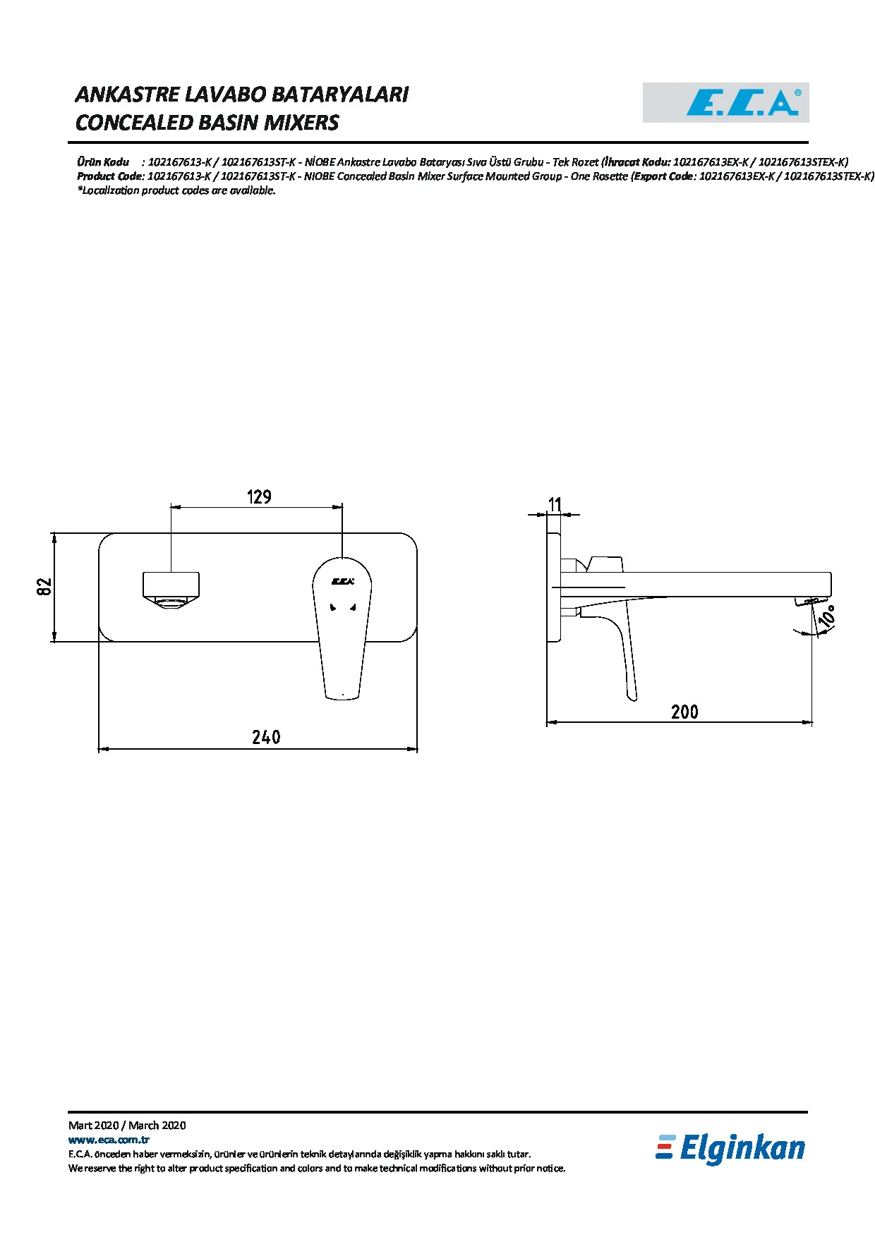 Купить Настенный смеситель для раковины E.C.A. Niobe 102167613EX-K (внешняя часть)
