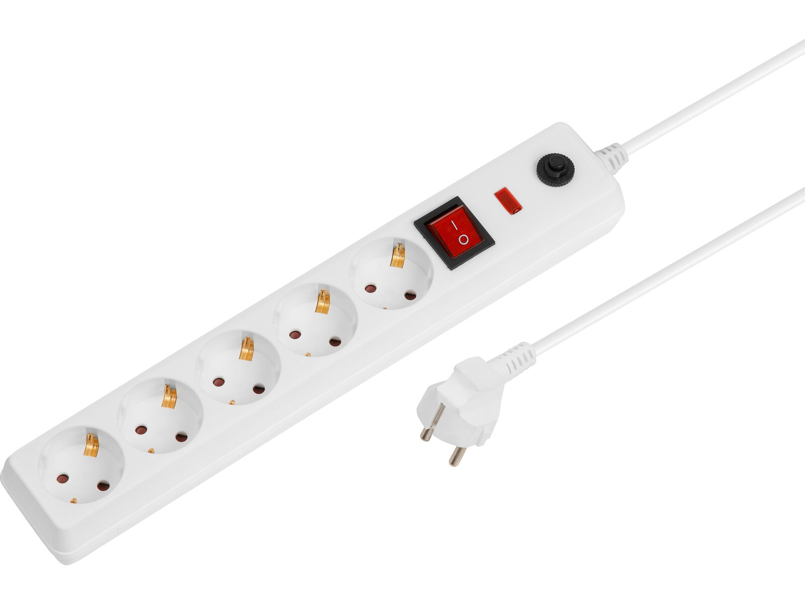 Фильтр сетевой 5м (5 роз., 2,2кВт, с/з, выкл, ПВС 3х0,75) белый Юпитер (JP8501-02) (юпитер)
