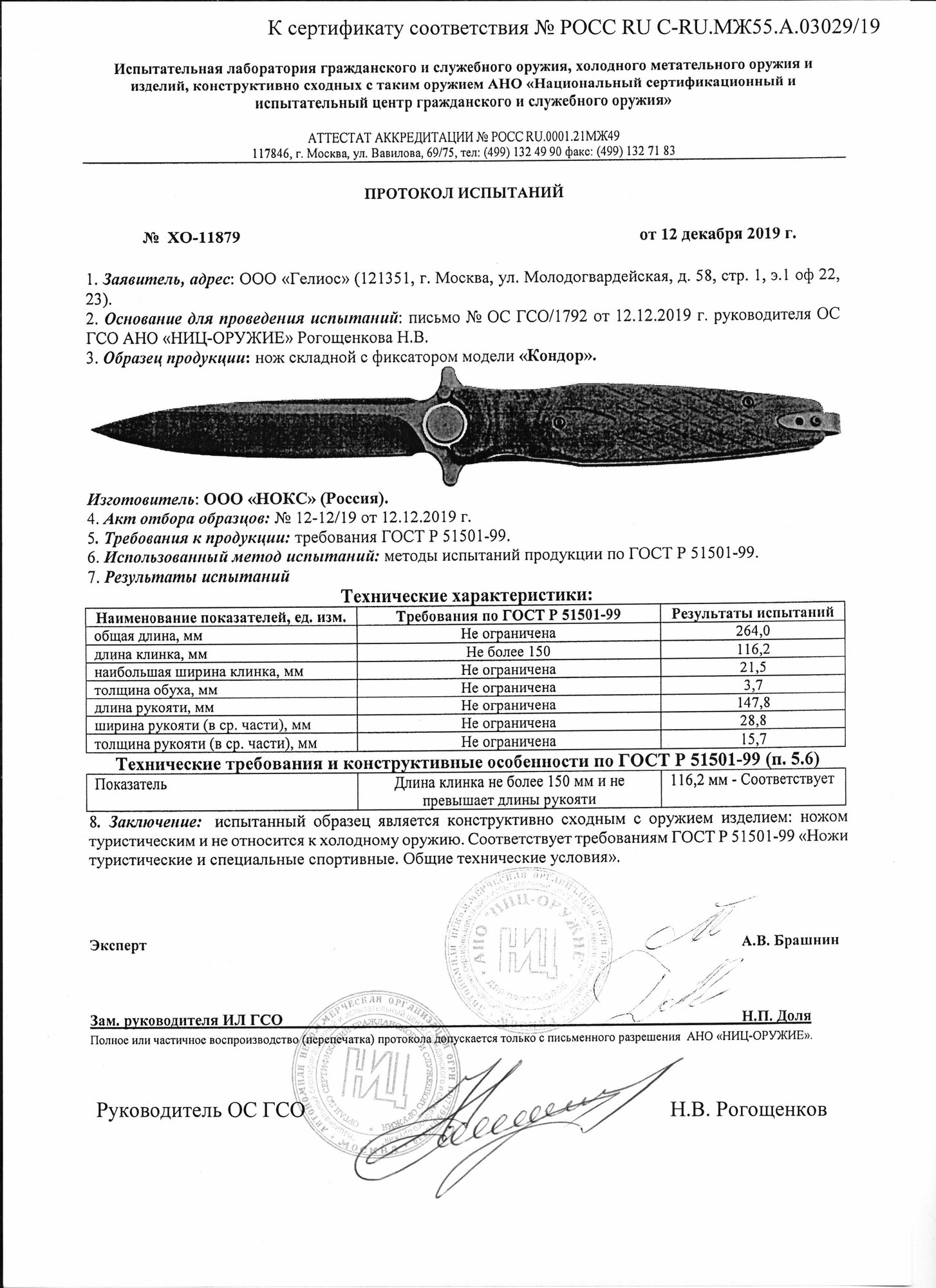 | Характеристики ножа | |