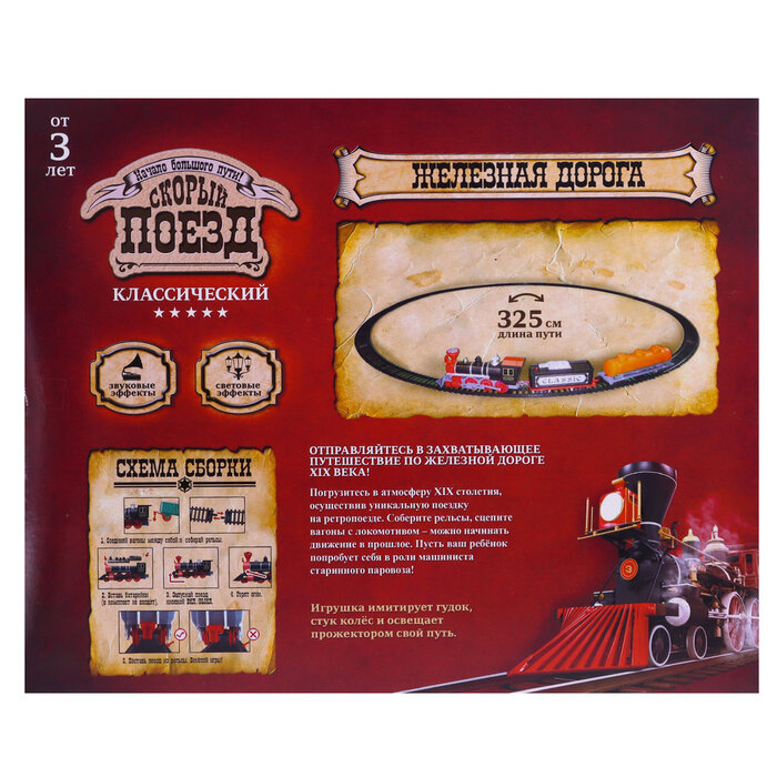 Железная дорога Паровоз, со светозвуковыми эффектами, протяжённость пути 3,25 м, микс 504350 . интересное: