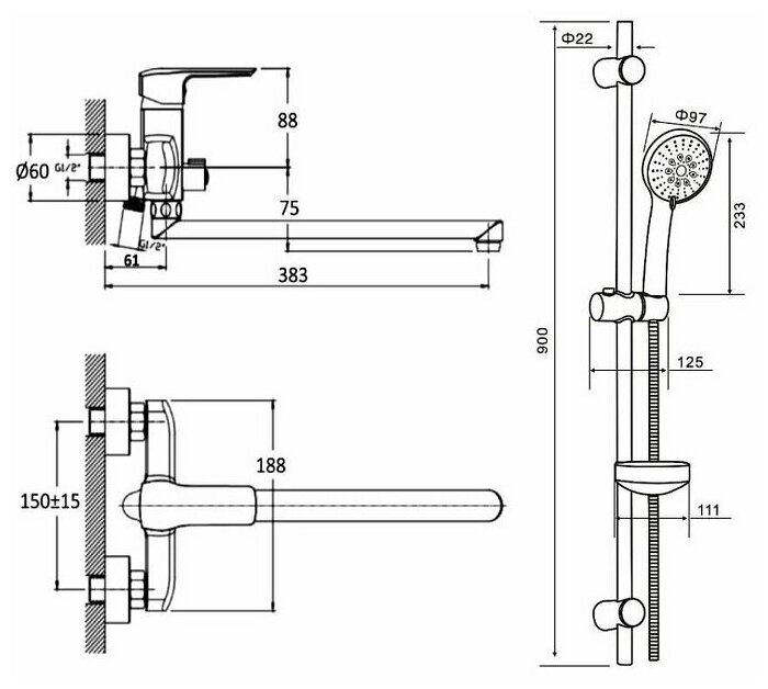 Смеситель для ванны Orange Merci M13-220cr с душевым комплектом интересное: