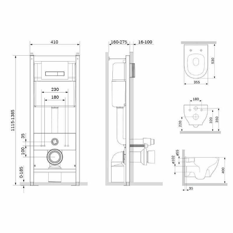 Купить Комплект унитаза с инсталляцией AM.PM Like FlashClean IS30251.801701 с сиденьем Микролифт и клавишей смыва Хром