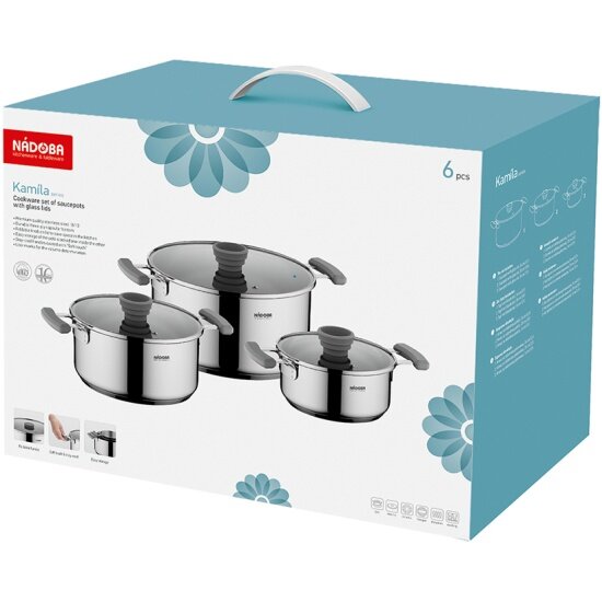 Купить Набор кастрюль Nadoba , серия KAMILA, со стеклянными крышками, 6 предметов