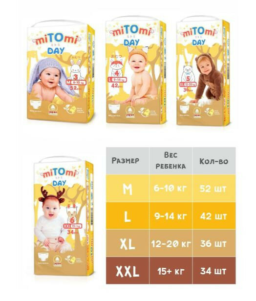 Ниже Вы можете прочитать отзывы на Подгузники-трусики miTOmi Day, размер XXL (15+ кг), 34 шт., ознакомится с подробными характеристиками, посмотреть интересные обзоры и фотографии на Подгузники-трусики miTOmi Day, размер XXL (15+ кг), 34 шт..