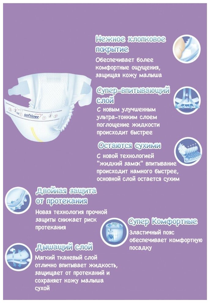Ниже Вы можете прочитать отзывы на Подгузники Softlove Platinum М40 (6-11 кг), ознакомится с подробными характеристиками, посмотреть интересные обзоры и фотографии на Подгузники Softlove Platinum М40 (6-11 кг).