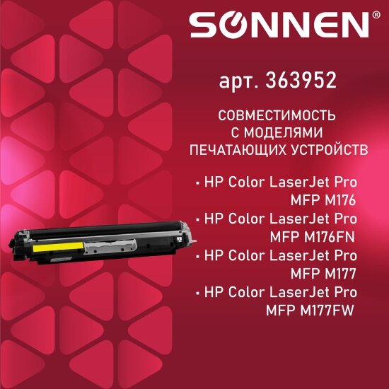 Купить Картридж лазерный Sonnen (SH-CF352A) для HP CLJ Pro M176/M177 высшее качество, желтый, 1000 страниц, 363952