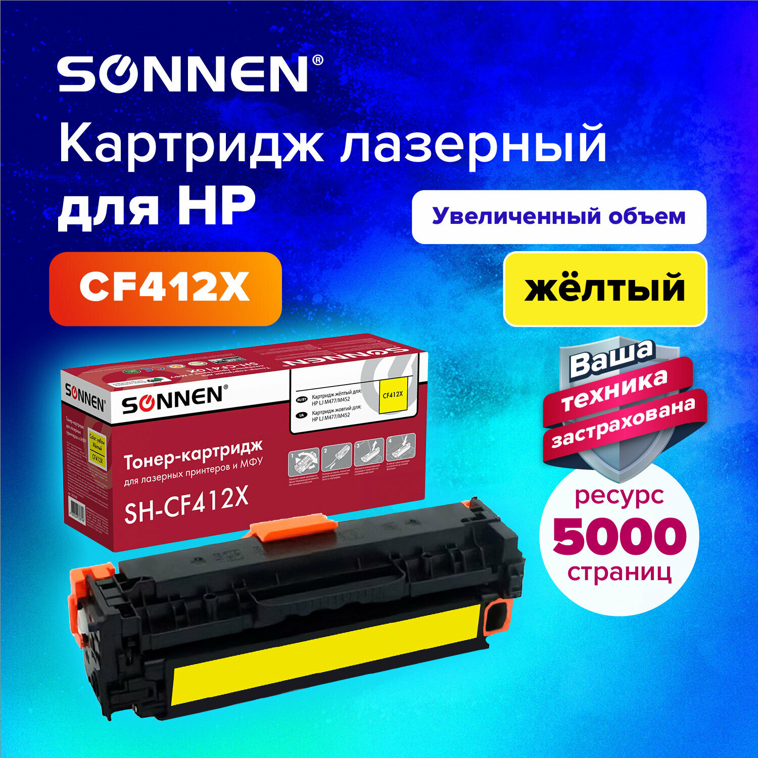 SONNEN Картридж лазерный (SH-CF412X) для HP LJ Pro M477/M452 высшее качество, желтый, 6500 страниц, 363948