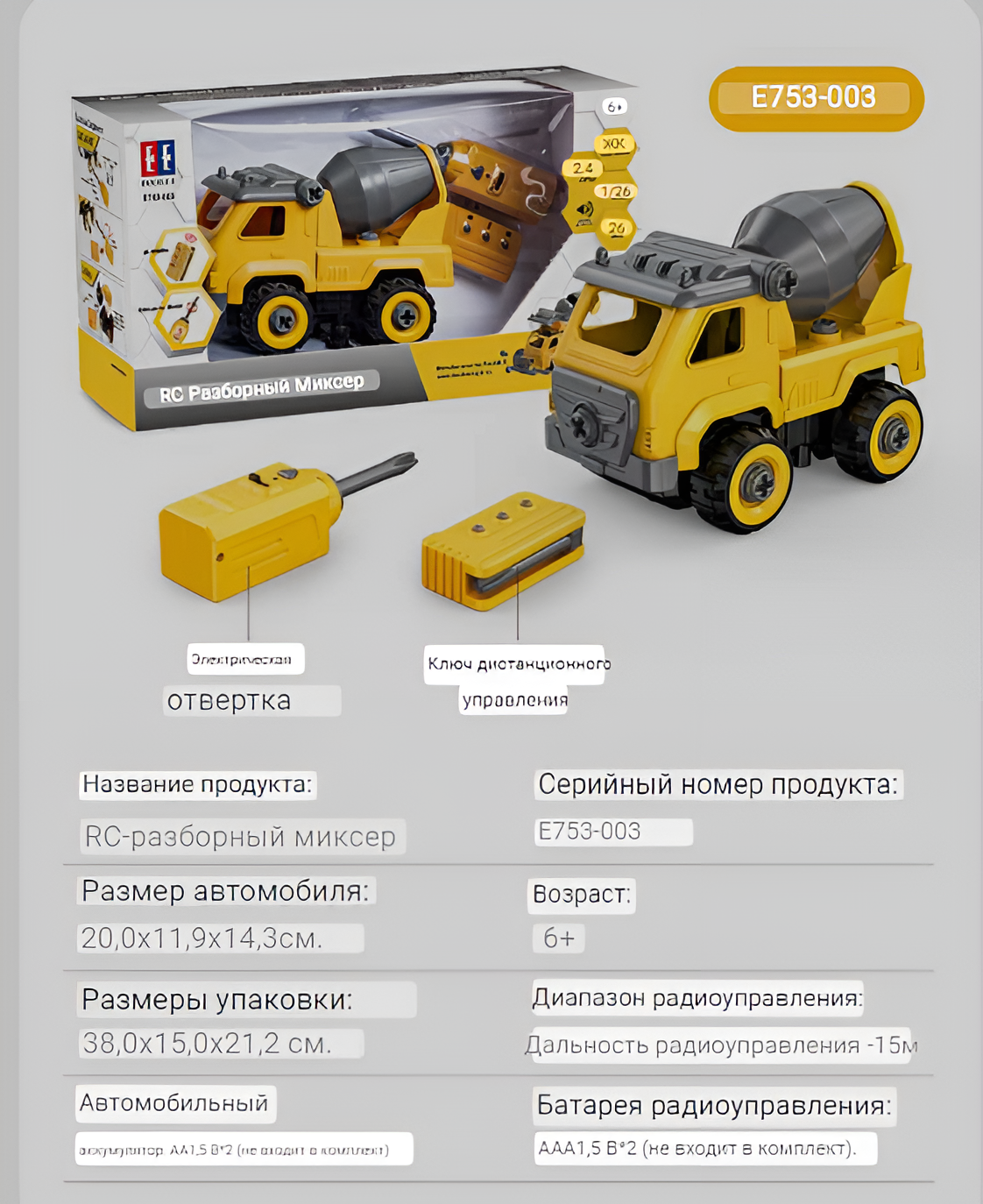Радиоуправляемая бетономешалка Double Eagle, разборный с отверткой 2.4G RTR масштаб 1:26 - E753-003 интересное: