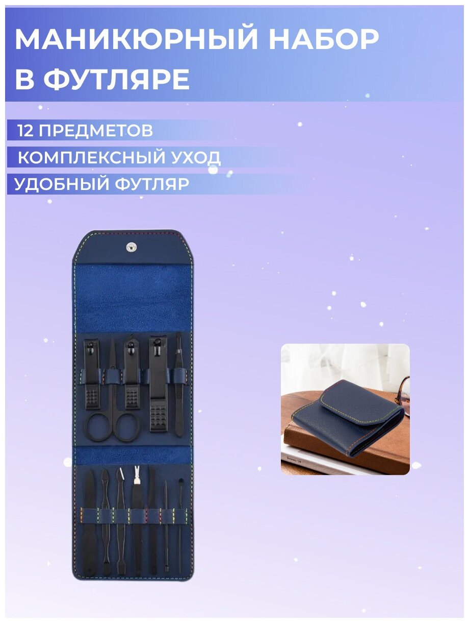 Профессиональный маникюрный, педикюрный набор для ухода Ecotone ,12 предметов Pro-master, синий интересное: