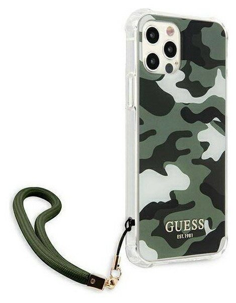 Купить Guess для iPhone 12/12 Pro (6.1) чехол PC/TPU CAMO Hard +Nylon hand cord Green