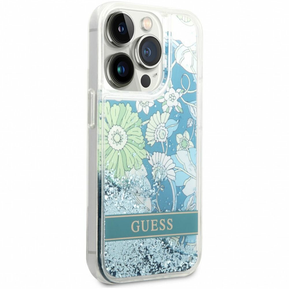 Чехол CG Mobile Guess Liquid Glitter Flower Hard для iPhone 14 Pro зелёный интересное: