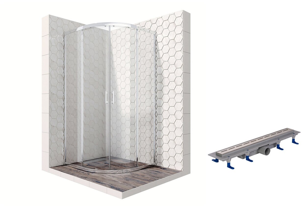 Купить Комплект полукруглого душевого ограждения с линейным трапом Ambassador Kingston 14011105-ST8, с EasyClean, 100 х 100 см