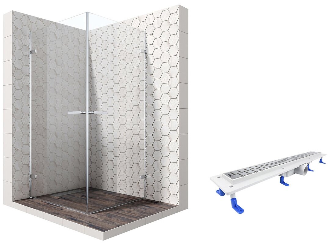 Душевой уголок 100х100 с трапом и распашными дверями Ambassador Abner 10011106-ST2: душевое ограждение из стекла 8 мм, профиль хром