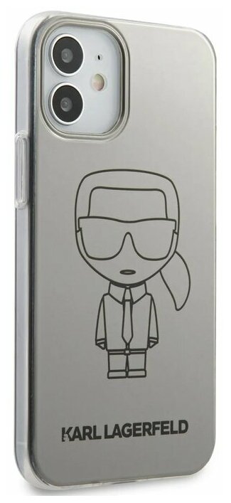 Lagerfeld для iPhone 12 mini (5.4) чехол PC/TPU Ikonik outlines Metallic eff Hard Silver интересное: